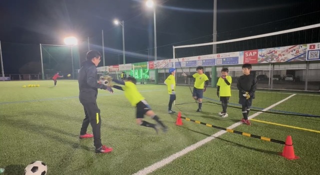 気温が下がってきました!先週に比べると一気に気温が低くなってきました!ゴールキーパーはこの寒さともうまく付き合いながらトレーニングや試合を行なって行かなければいけません!寒くて身体が動かなくてはゴールを守れません!トレーニングでは長ズボンやインナー、ネックウォーマーなどの着用するなど工夫することを意識しましょう!シュートを止めるための基本姿勢とは!ゴールキーパーにはたくさんの技術がありますが、その技術を発揮するためにも基本の姿勢が大切になります!今回のシュートストップのトレーニングでもまずきちんと基本姿勢が取れていないとシュートに反応できなかったり、簡単にゴールを奪われてしまいます!では基本姿勢のポイントは何でしょうか!?このことがわかっていないとトレーニングや試合の時に基本の姿勢を取ることができません!足の幅、手の位置、重心の位置、姿勢などたくさんの気をつけるポイントがあります!それぞれのポイントについては毎回のトレーニングで伝えています!なんとなくやるのではなくまずはきちんと意識して取り組むこと!!意識することから始めて、無意識にできるまで徹底的にやろう!パワーポジションを取ろう!今回のトレーニングでは『パワーポジション』を取るということを意識しました!パワーポジションとは素早い動作や瞬時の力の発揮を可能にするための安定した準備姿勢のことです!前述した基本姿勢でシュートに対してなんとなく構えているだけではスムーズに動き出すことはできません!きちんとタイミングを取り、シュートが打たれる時には『パワーポジション』を取り、身体を動かす準備を意識しましょう!構えた時の股関節の曲がり具合!背中が丸まっていないか!シューターの方に爪先は向いているか!仲間のプレーやコーチからのアドバイスを参考にしよう!ラストはゲームの中で発揮できるように!スクールのラストは4vs4+2GKの試合を行いました!全員がゴールキーパーですが、もちろんフィールドプレーも自分たちでやります!様々なポジションを経験することでゴールキーパーとしての経験に活かします!試合の中で学んだことを発揮できないとチームの試合で活躍できません!!ポジションを取る!コーチングをする!シュートを止める!たくさんの役割をきちんと自分で判断してプレーを発揮することを心がけましょう!