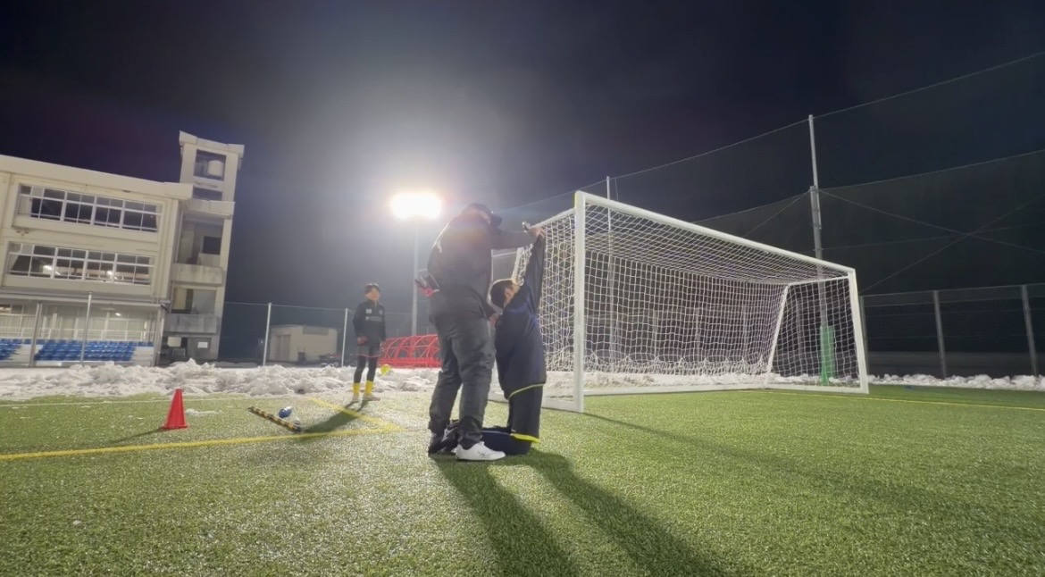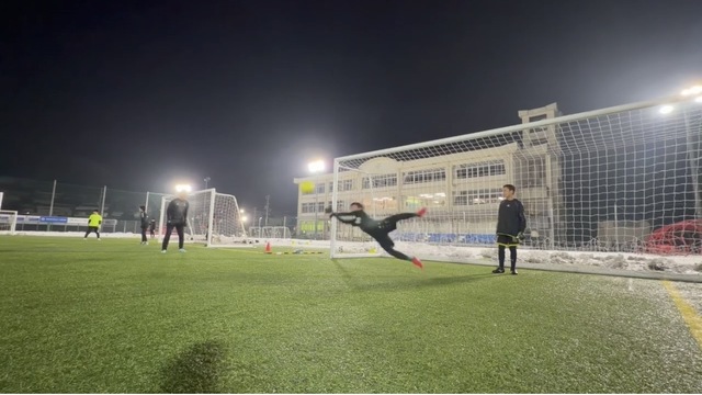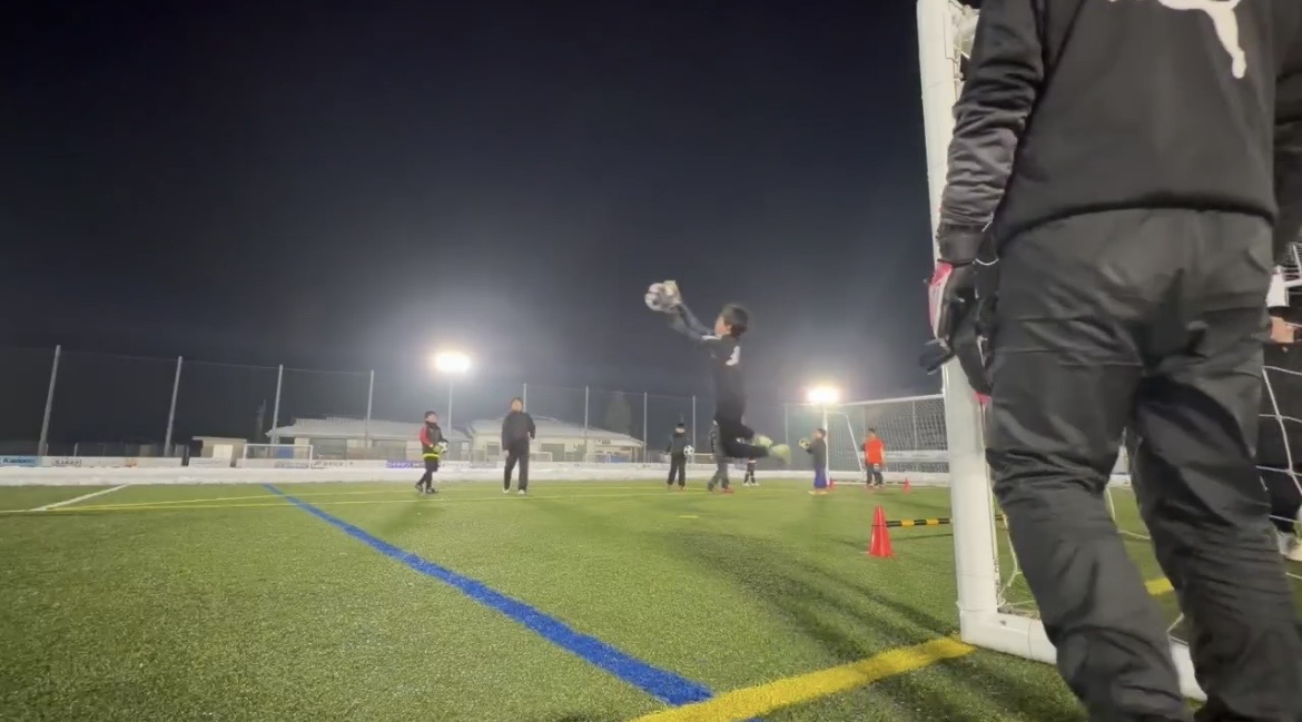 雪に囲まれながらの福知山校!週末に降った雪の影響で開催が危ぶまれましたが、フットサルコートのみの広さでしたが福知山校無事に開催できました!北部や兵庫県のゴールキーパーたちこの雪をも溶かすほどの熱い気持ちでトレーニングに励みました!学年やチームは違えど、共に学べる場に感謝しながら大きく成長していきましょう!今回は技術に特化したトレーニング!今回のスクールは通常よりも狭いスペースでのトレーニングなので、ディフレクティングの技術習得をメインに行いました!普段より説明や反復に時間をかけて行うことで試合で使える技術へと磨き上げていく!試合ではどの技術を使うかの判断を求められるが、その時にきちんとした技術を発揮できるように正確で確実な技術を身につけておく必要があります!年代に応じて段階的な指導をするためにボールスピード、強さ、ボールの種類などを工夫していきます!スクールでは年代やレベルに応じてグループ分けをして学べることができます!試合で使える技術になるまで磨き上げていこう!!ディフレクティングとは!?今回はディフレクティングの技術の習得です!ディフレクトとはボールを「そらす」と言う意味でゴールに向かってきたボールをゴールに入らないように「そらす」時に使う技術です!両手もしくは片手で、手の親指の付け根あたりを使って胸からボールへ力を加えます!最初はぎこちなかった選手も柔らかいボールを使ったり、長座、立膝など段階を踏んで行うことで徐々にできてきました!左右のシュートに対してのディフレクティングとゴール後方へのループシュートをイメージしたディフレクティングの2種類行いました!新しい技術を知ったことと、実践でできそうでできない技術に何度も取り組む姿勢が非常に印象的でした!周りの仲間と正確な技術を身につけるためにココの場所で努力しよう!!環境をプラスに捉えよう!京都府北部で開催する福知山校には毎年多くの選手に参加してもらっています!北部地域は今週のように雪が降ったり、京都市内に比べて天候が悪い日が多かったり、試合のために市内へ移動をしなければならなかったり…環境を言い訳にするのは簡単ですが、この環境だからこそ得られるものに目を向けてほしいです!今回のスクールでも雪で半面使えない状態だからこそテクニックにフォーカスしてトレーニングができたり、天候面でグランドが使えない状態だからレクチャーで頭を鍛えることができる!要は自分次第で環境をマイナスにもプラスにも変化させることができるということです!環境を言い訳にせずに自分に矢印を向けてどんどん成長していこう!!